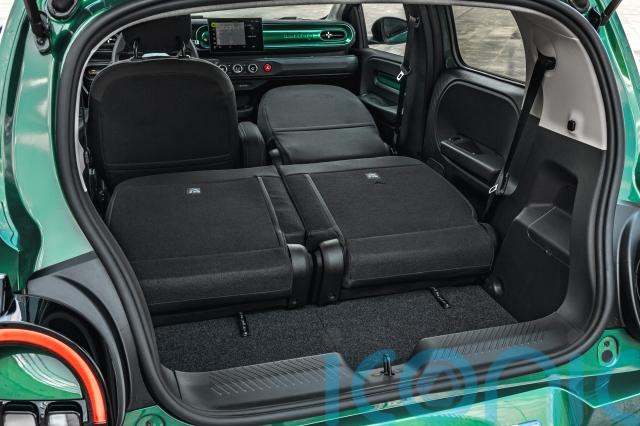There’s a utilitarian feel to the Twingo, with some clever solutions dotted around the place to help improve practicality without increasing price. There’s a central armrest which unzips to provide storage, while the boot floor is split into two sections so that you can still access the charging cables underneath even if you’ve got luggage up above. Some areas do feel particularly cheap, with the central storage section between the seats flexing when you touch it. The plastics used lower down are scratchy, but fortunately, there are plenty of textured areas to help make things feel a little more upmarket.