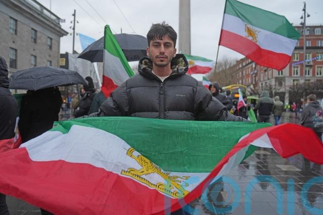 Protesters demanding the expulsion of Iranian diplomats gathered on Dublin’s O’Connell Street on Saturday.