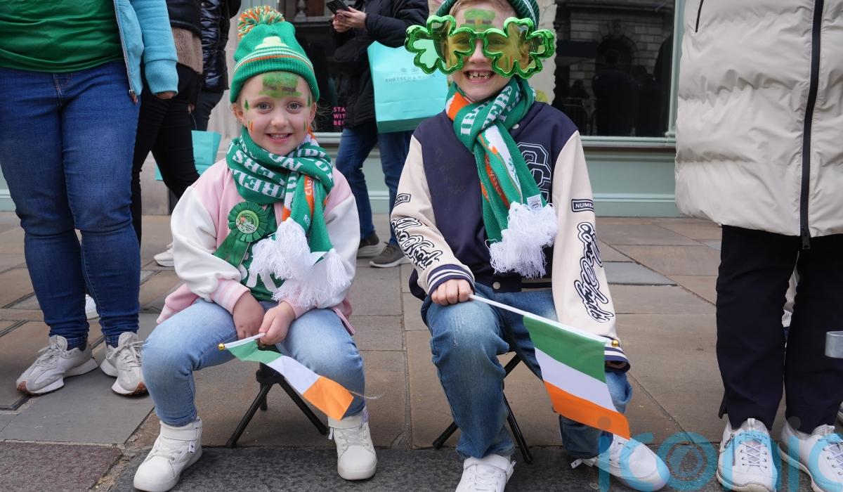 Men dressed as giant leprechauns handed out bags of Tayto crisps to children as they watched the bagpipes, drumming, dancing and songs during the colourful parade which included dignitaries and grassroots organisations from the Irish community, including Travellers.