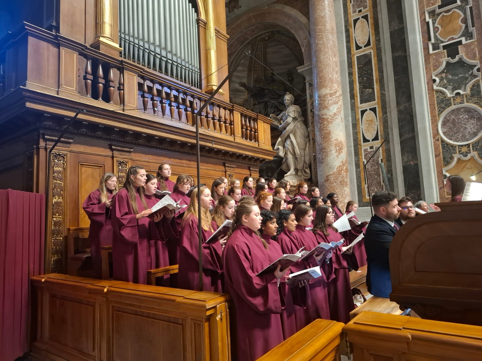 The students sang in the Vatican's St Peter's Basilica with the Gentlemen of the Papal Choir at a High Sung Mass, a formal, musical celebration of the liturgy.