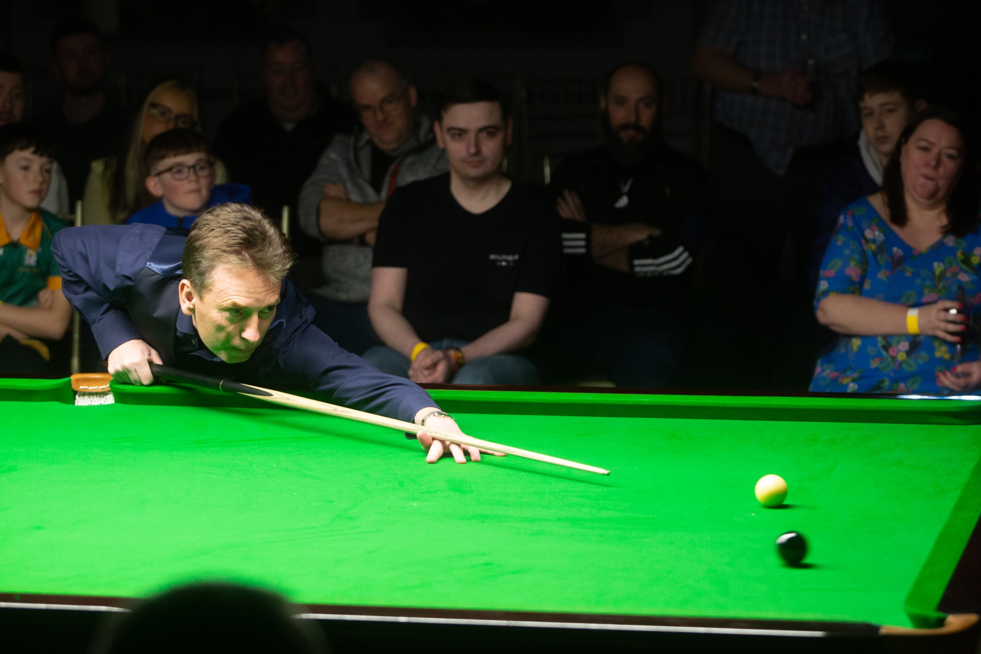 Ken Doherty pots the final black in the first frame of his exhibition match on Thursday night.