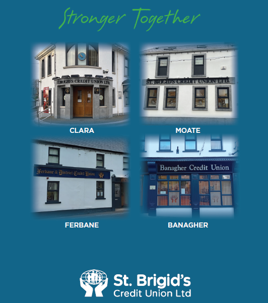 St Brigid’s Credit Union Ltd. is a progressive, community based financial services institution with branches in Clara, Ferbane and Banagher in county Offaly and Moate in county Westmeath, serving members with a wide range of financial services.