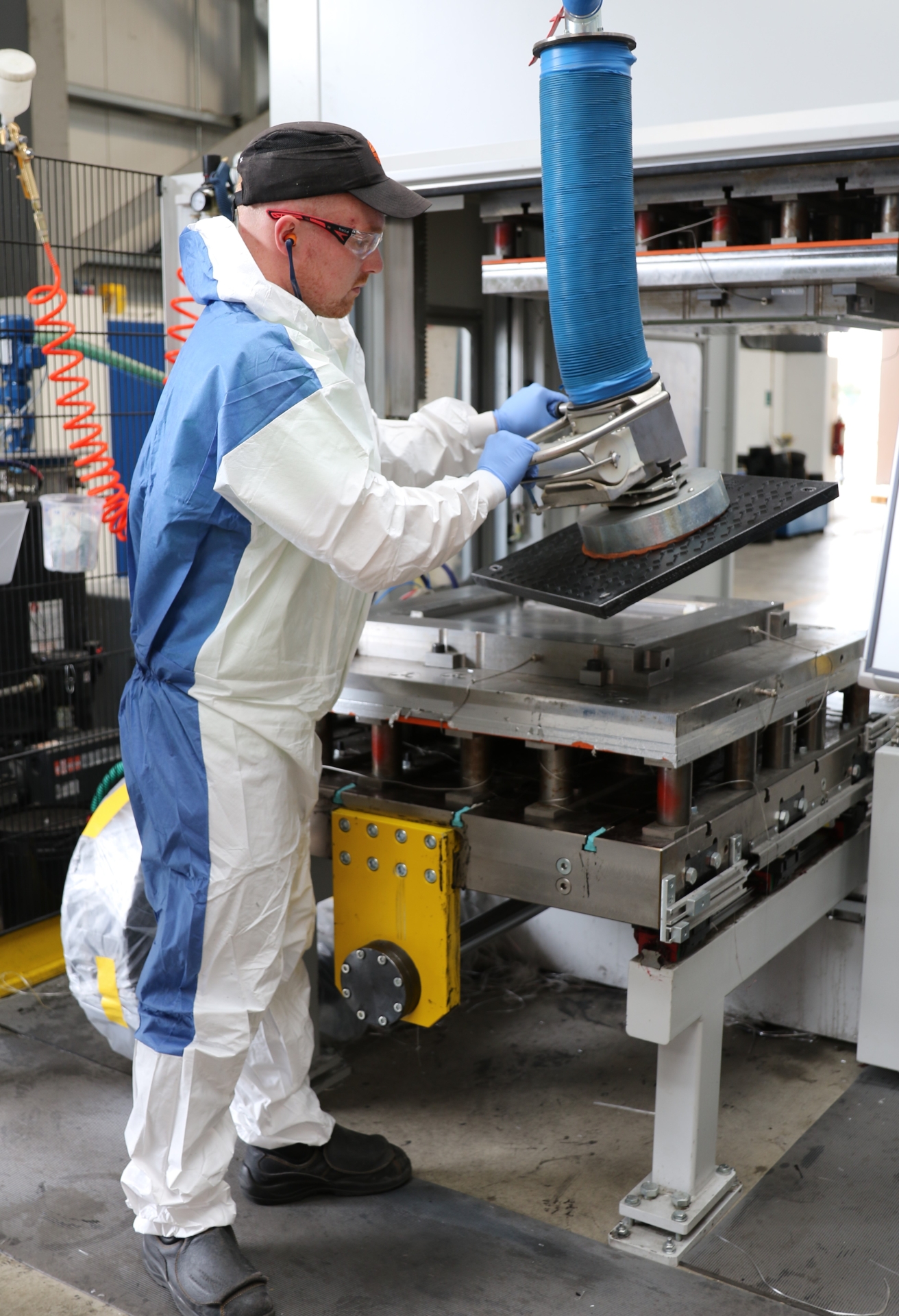 The ergonomic handling system on the composite cover production line.