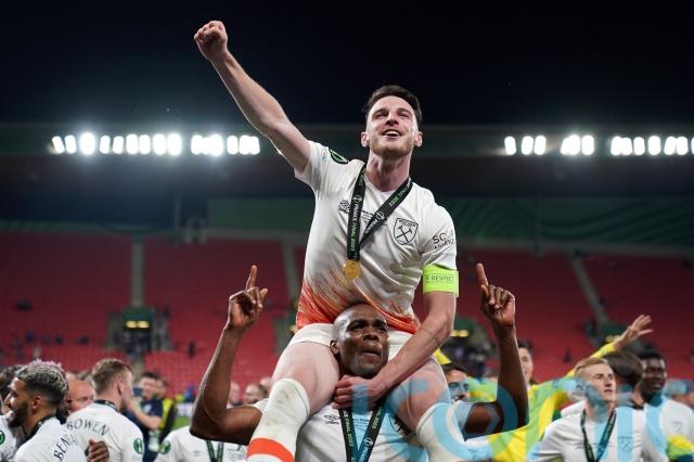 And Rice may have signed off his West Ham career by becoming only the club’s third captain, along with Bobby Moore and Billy Bonds, to lift silverware in their 128-year history after the 2-1 victory in Prague.
