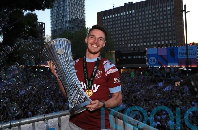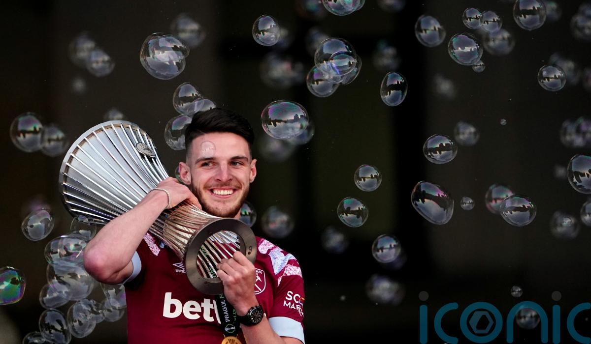 Rice’s last act as a West Ham player was to become only the third captain in their history, behind Bobby Moore and Billy Bonds, to lift a major trophy after last month’s Europa Conference League victory over Fiorentina.