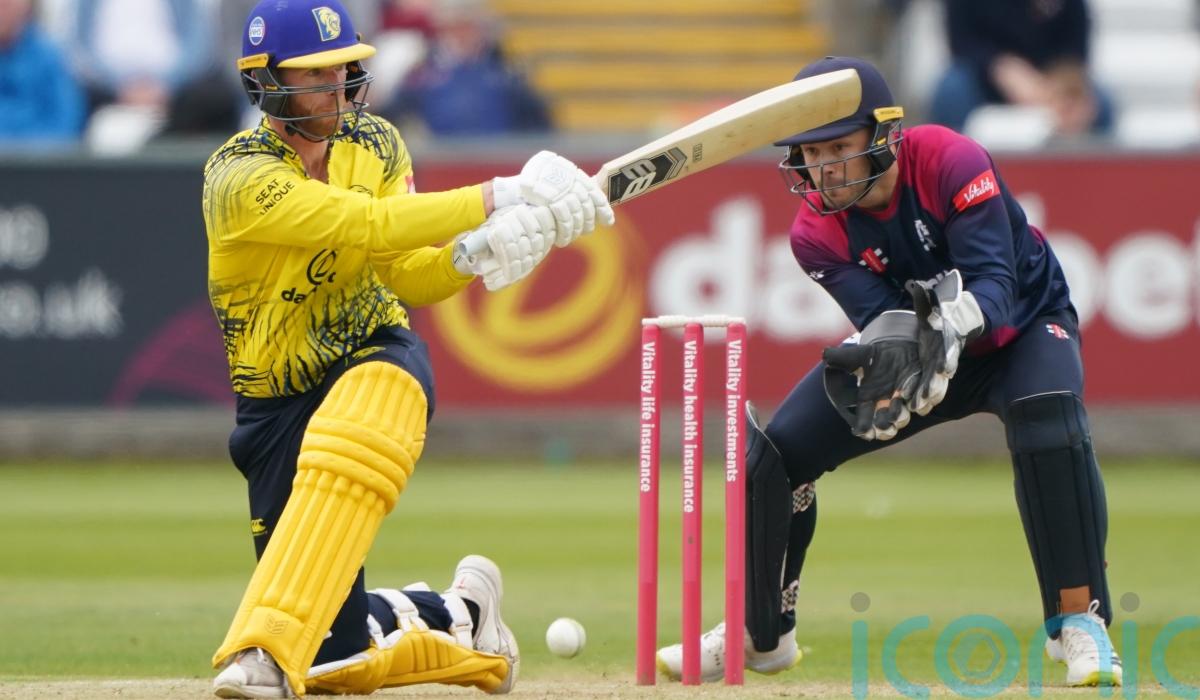 The opener blitzed nine fours and five sixes alongside Craig Overton’s 42, while Dan Douthwaite claimed three wickets in an over to finish with four for 37.
