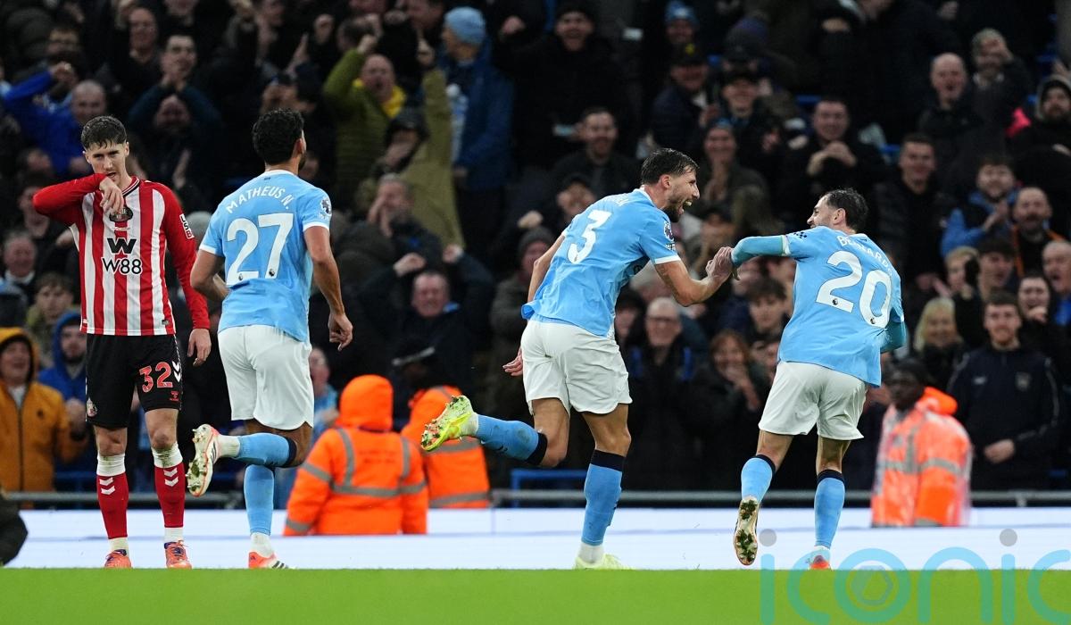 Centre-backs Ruben Dias and Josko Gvardiol set Pep Guardiola’s side on their way with a quickfire double before the break at the Etihad Stadium.