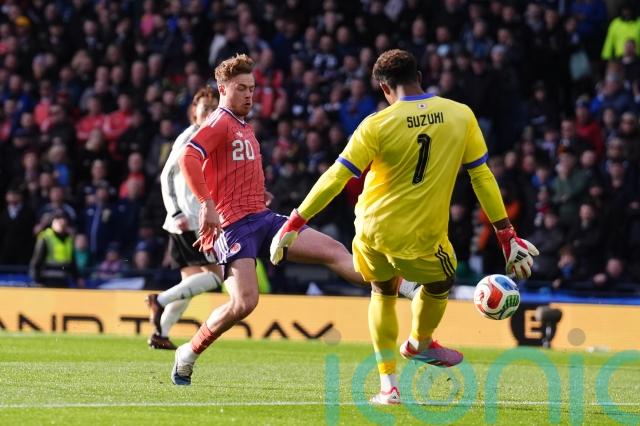 In the eighth minute Scott McTominay had a terrific chance to open the scoring when fellow midfielder John McGinn teed him up with a cross from the right but his unconvincing shot from 10 yards was pushed on to the post by Japan keeper Zion Suzuki and away to safety.