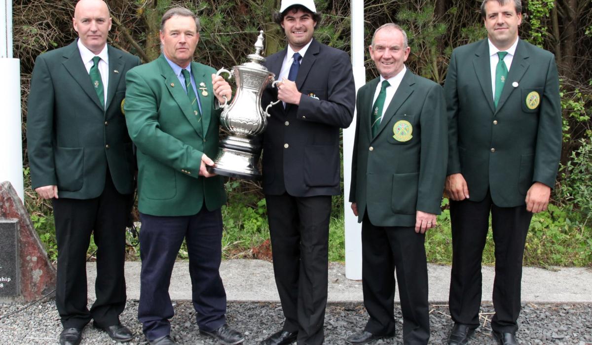 (Picture caption) President of the ICTSF Robert Nugent presenting the trophy to the 12th ICTSF World DTL Champion Matthew Schiller (Australia) at Esker Shooting Grounds. On his left; Conor Mooney Hon Treasurer ICPSA, on his right Pat Donaghy, owner of Esker Shooting Grounds and host of the 12th World DTL World Championships and Peter Hanifin, Chairman of ICPSA