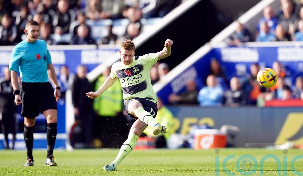 Kevin De Bruyne’s stunner fired Manchester City back to the top of the Premier League after victory at Leicester.