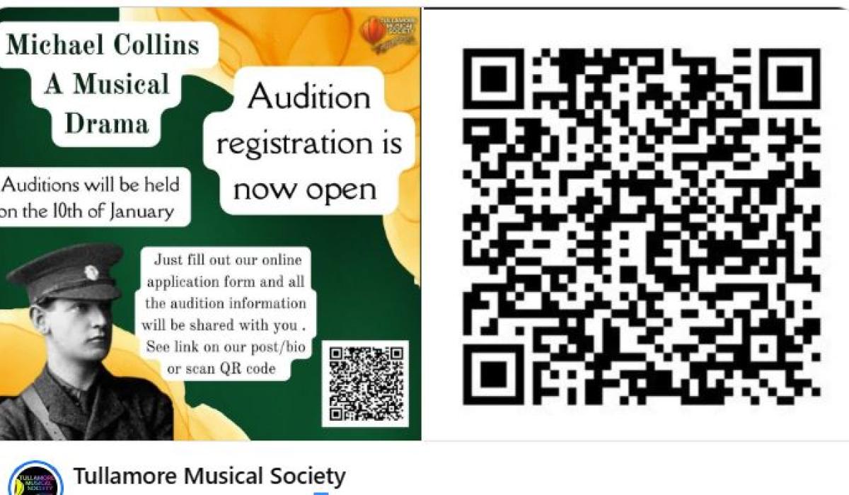 Auditions for Tullamore Musical society's forthcoming production of “Michael Collins – A Musical Drama” will commenced on Tuesday next, January 10.