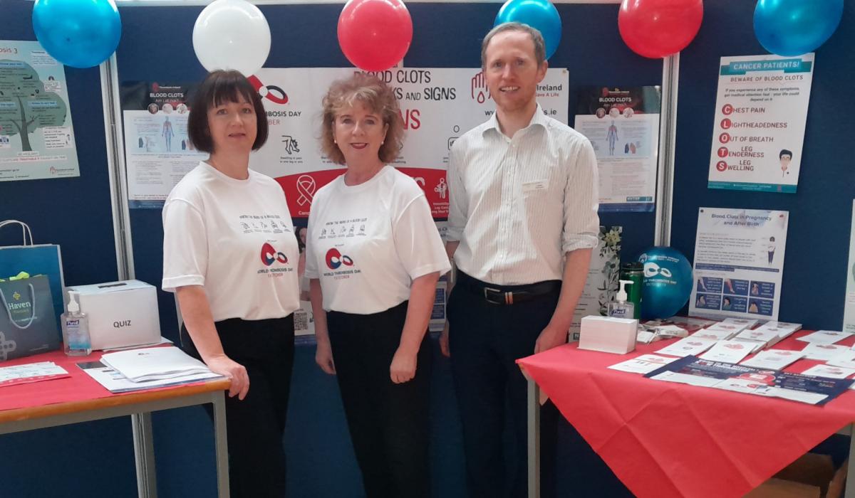 Pictured at the awareness event on Friday 13th in MRHT is Annemarie Kirwan CNS Anticoagulation, Maureen Rasoul CNS Anticoagulation, Ciarán Muldowney Chief II Pharmacist