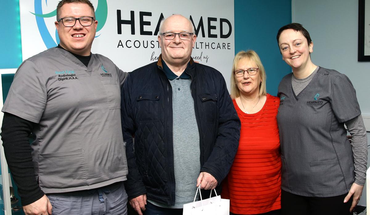 Brian Dunne is pictured here with Rauri Keogh, HearMed Audiologist, Brian's wife Eileen and Rose Multaney, HearMed Audiologist