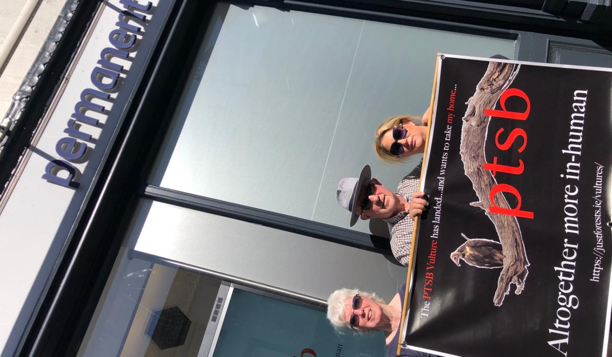 Tom Roche - a native of Tullamore now living in Rhode - held his 5th vigil outside a PTSB branch on the day,