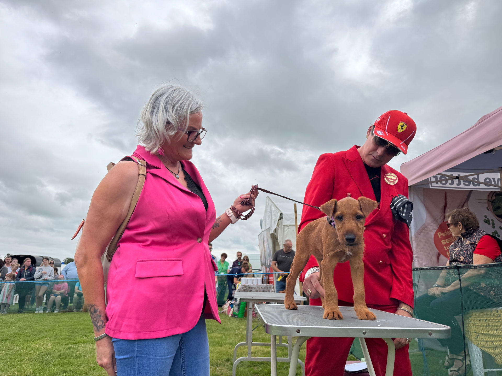 Frostie the Pomeranian at the Tullamore Show dog show with Christine Sinnott, her brother Alan Sinnott, and Christine's daughter Theresa, 12