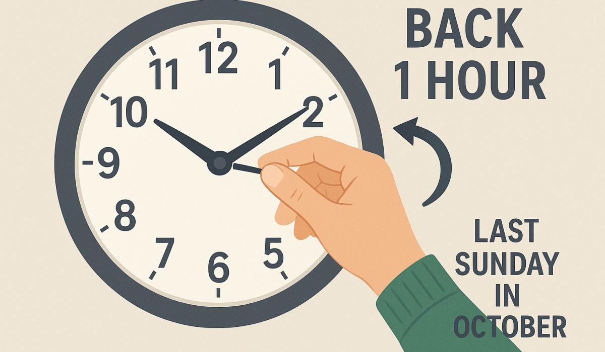 Clocks go back on Saturday night/Sunday morning October 25/26