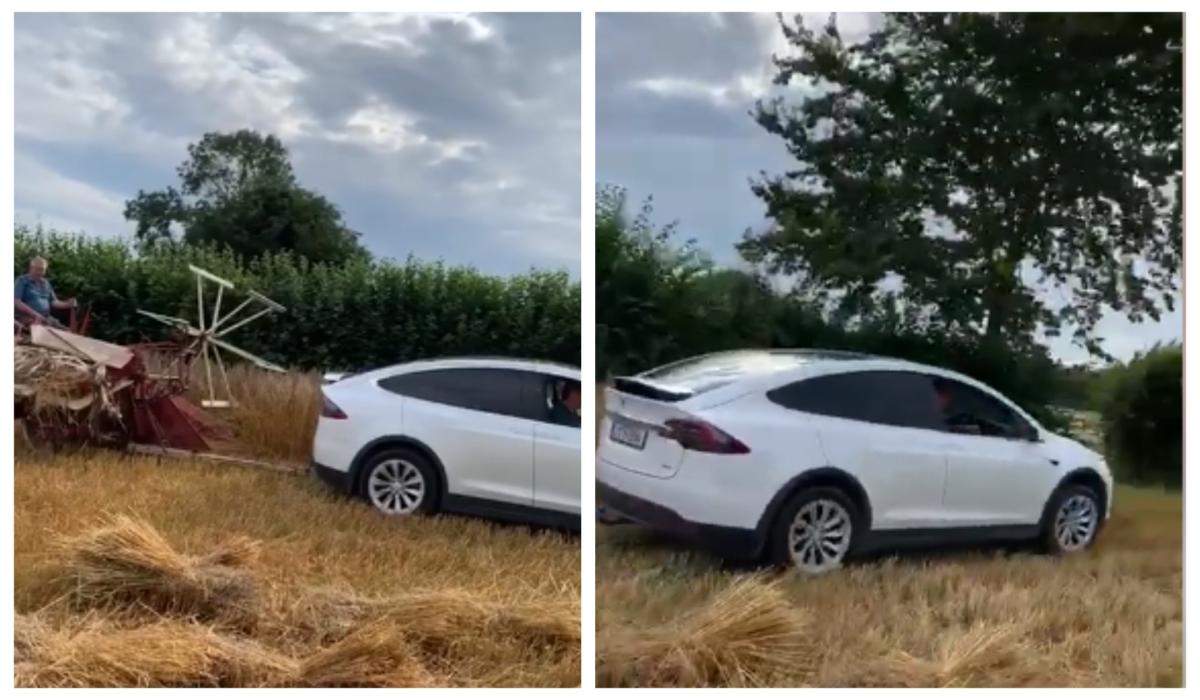 A little bit of history was made at the 46th Annual Steam Threshing in Clonbullogue Co Offaly on Sunday as farmers used a Tesla sports car to cut corn.