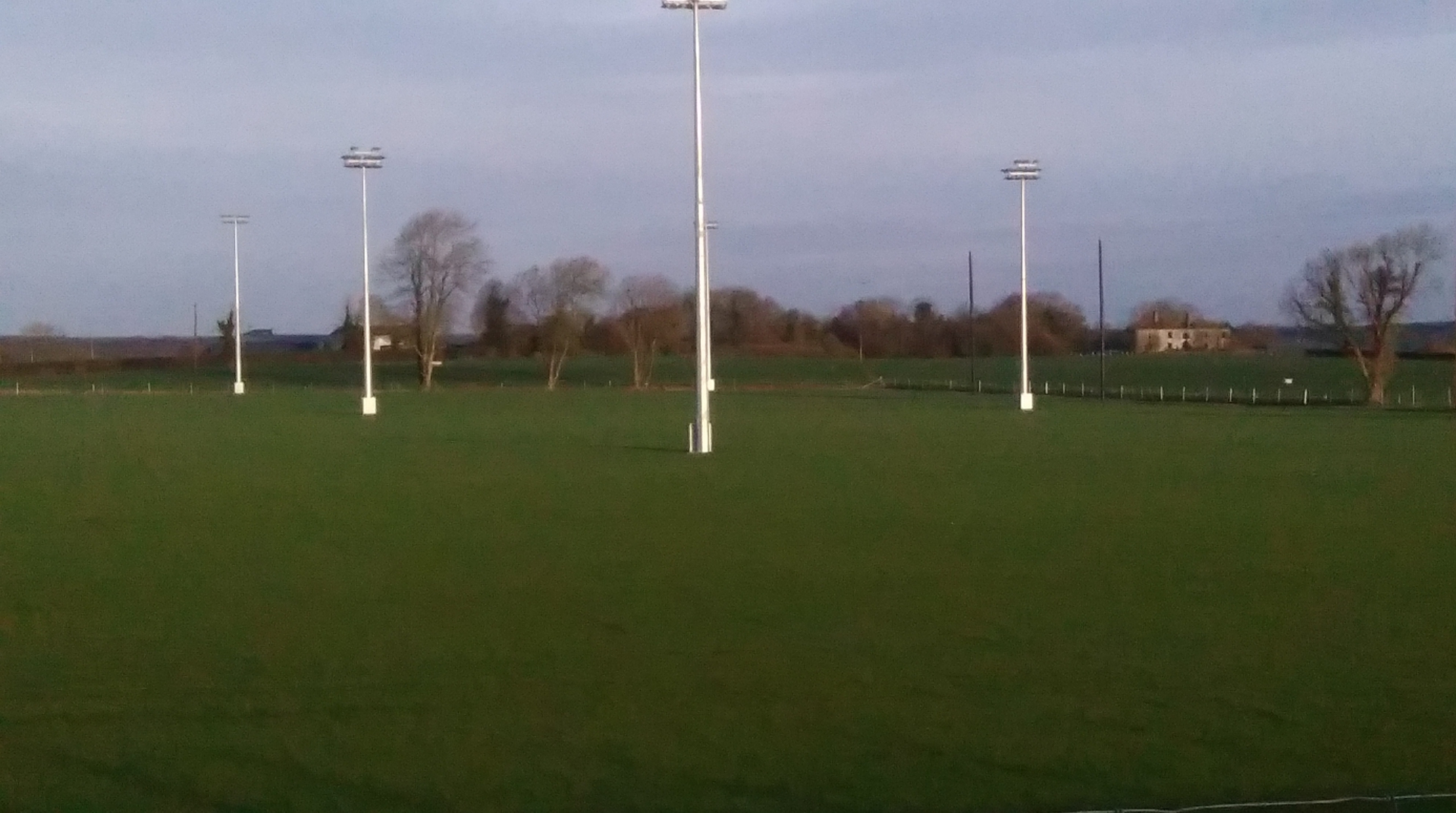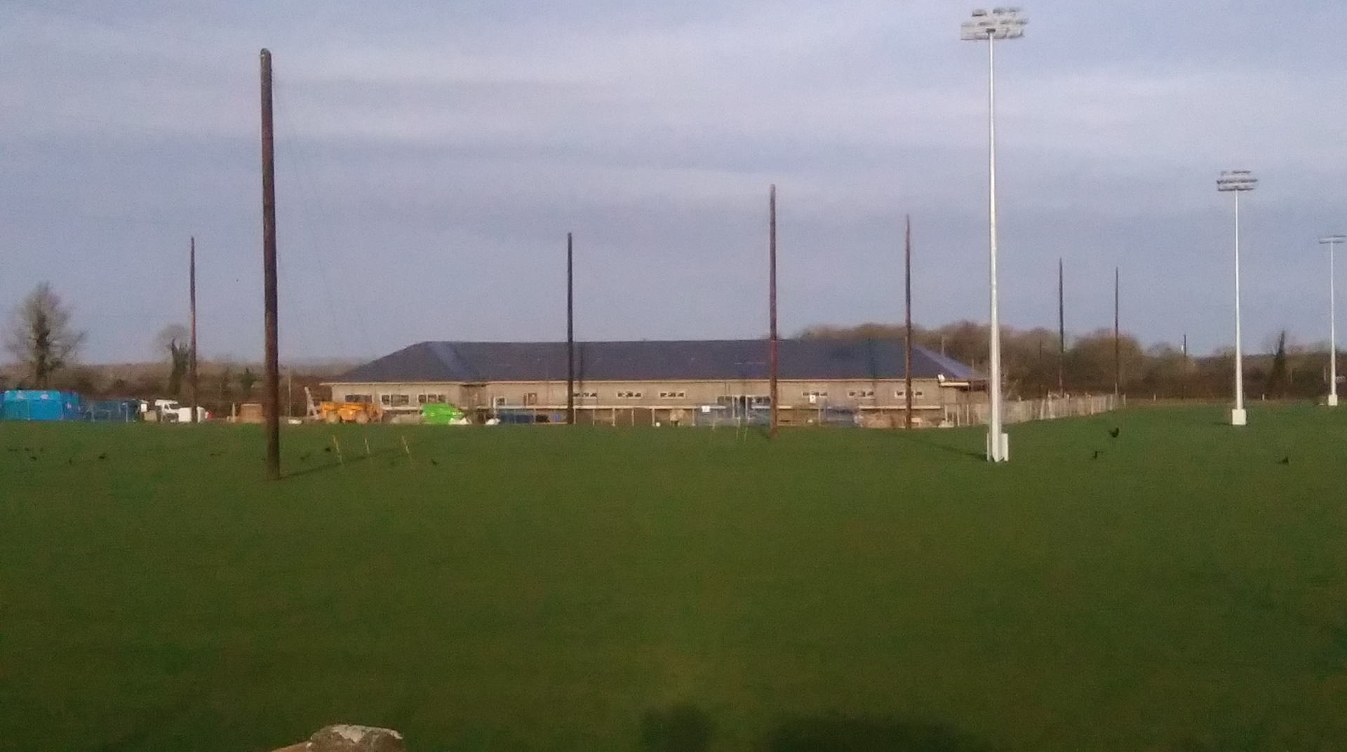 Floodlights await the first training session in Faithful Fields
